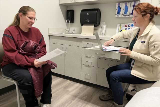 Purk, 43, sat in a small exam room with the nurse practitioner, who asked about her life. Purk described family struggles and other stressors she faces while trying to abstain from abusing painkillers.