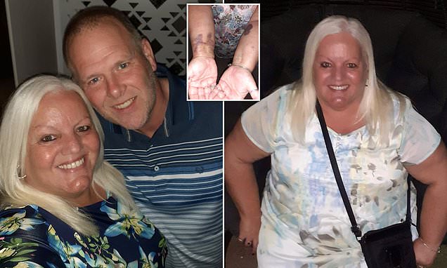The 58-year-old (pictured) dismissed the pain, believing it was just ‘heartburn’ and instead took ‘some Gaviscon and mint tea’. It was only after experiencing chest pain as the day wore on, that her partner John, 54, grew increasingly concerned