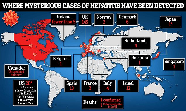 More than 200 children have been sickened by the condition across the world in up to 14 countries since last October *cases in Canada, Japan and Wisconsin, Illinois and New York are still yet to be confirmed