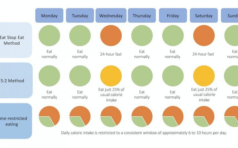 - The “Eat Stop Eat” method. Put forward by Brad Pilon in his book of the same name, the principle is to alternate days of normal eating and fasting, including two non-consecutive fasting days in a week.